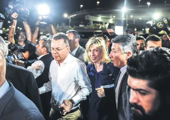 Andrew Craig Brunson, Alsancak’taki evinde hazırlıklarını tamamladıktan sonra eşi Norine Brunson ile Adnan Menderes Havalimanı CIP kapısına geldi. Geniş güvenlik önlemleri altında terminale alınan Brunson ve eşi, 20 yıl yaşadıkları Türkiye’den özel uçakla ayrıldı. İlk durağı Almanya olan Brunson’ın, İki gün bu ülkede kaldıktan sonra ABD’ye geçeceği kaydedildi.